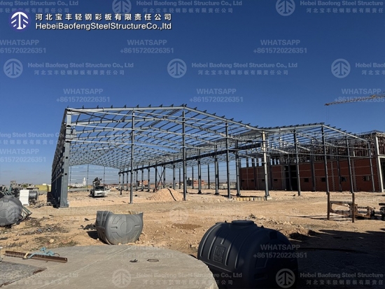The main frame of the building—columns, beams, trusses, and other elements—is made of steel. The walls and roof are often made of lighter materials like insulated metal panels, creating an efficient and strong enclosure.