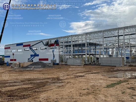 The main frame of the building—columns, beams, trusses, and other elements—is made of steel. The walls and roof are often made of lighter materials like insulated metal panels, creating an efficient and strong enclosure.