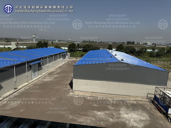 The main frame of the building—columns, beams, trusses, and other elements—is made of steel. The walls and roof are often made of lighter materials like insulated metal panels, creating an efficient and strong enclosure.