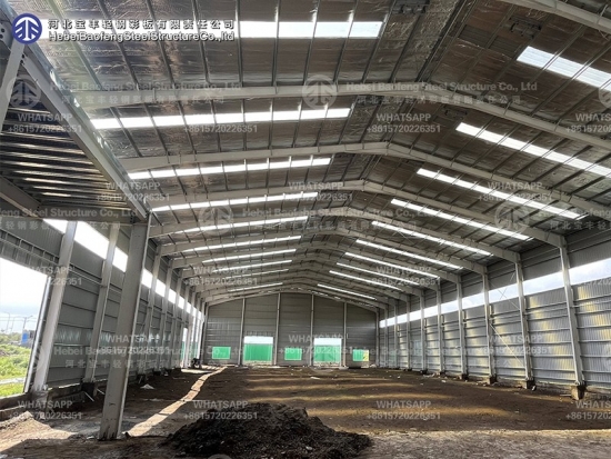 The main frame of the building—columns, beams, trusses, and other elements—is made of steel. The walls and roof are often made of lighter materials like insulated metal panels, creating an efficient and strong enclosure.