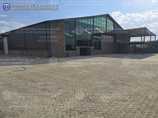 The main frame of the building—columns, beams, trusses, and other elements—is made of steel. The walls and roof are often made of lighter materials like insulated metal panels, creating an efficient and strong enclosure.