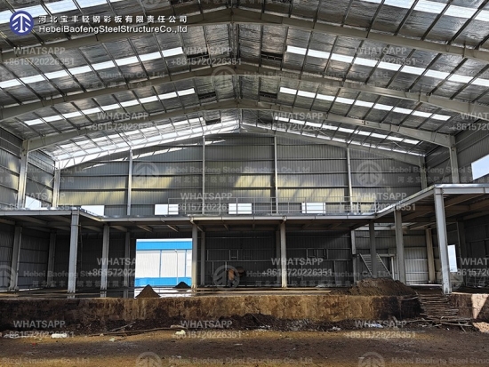 The main frame of the building—columns, beams, trusses, and other elements—is made of steel. The walls and roof are often made of lighter materials like insulated metal panels, creating an efficient and strong enclosure.